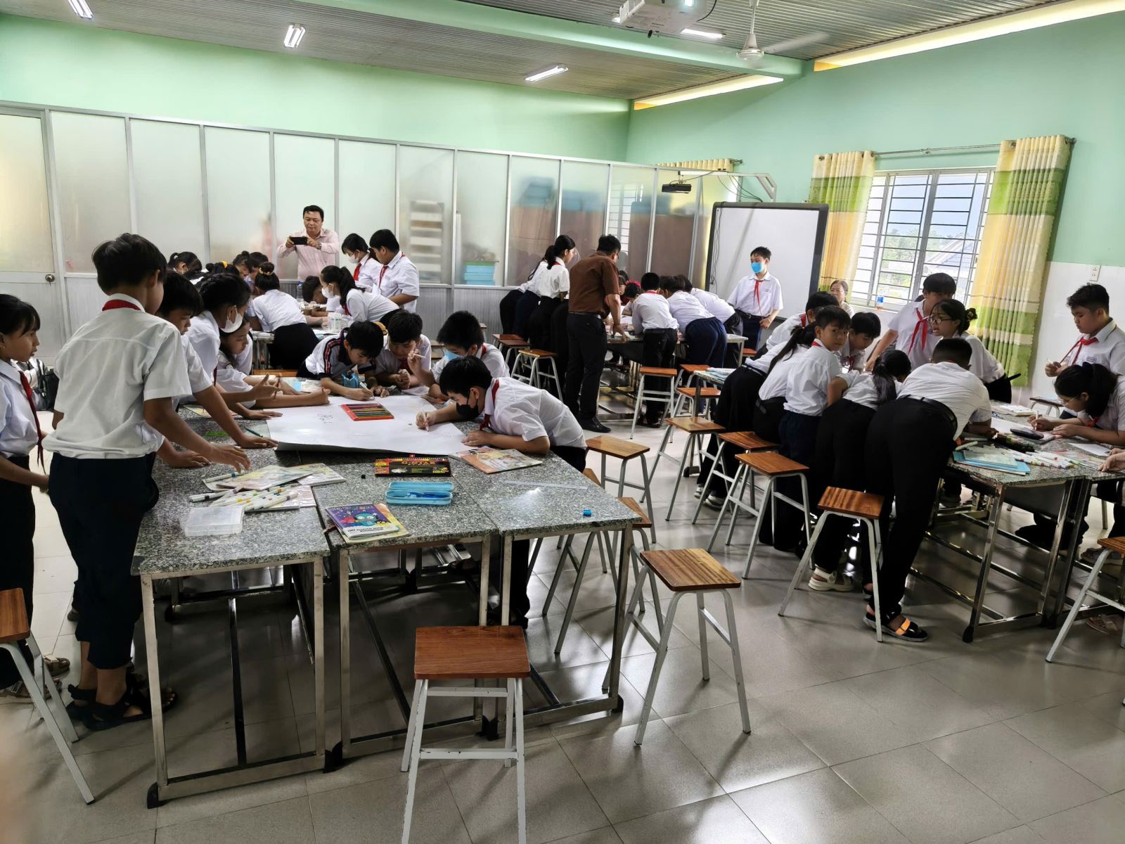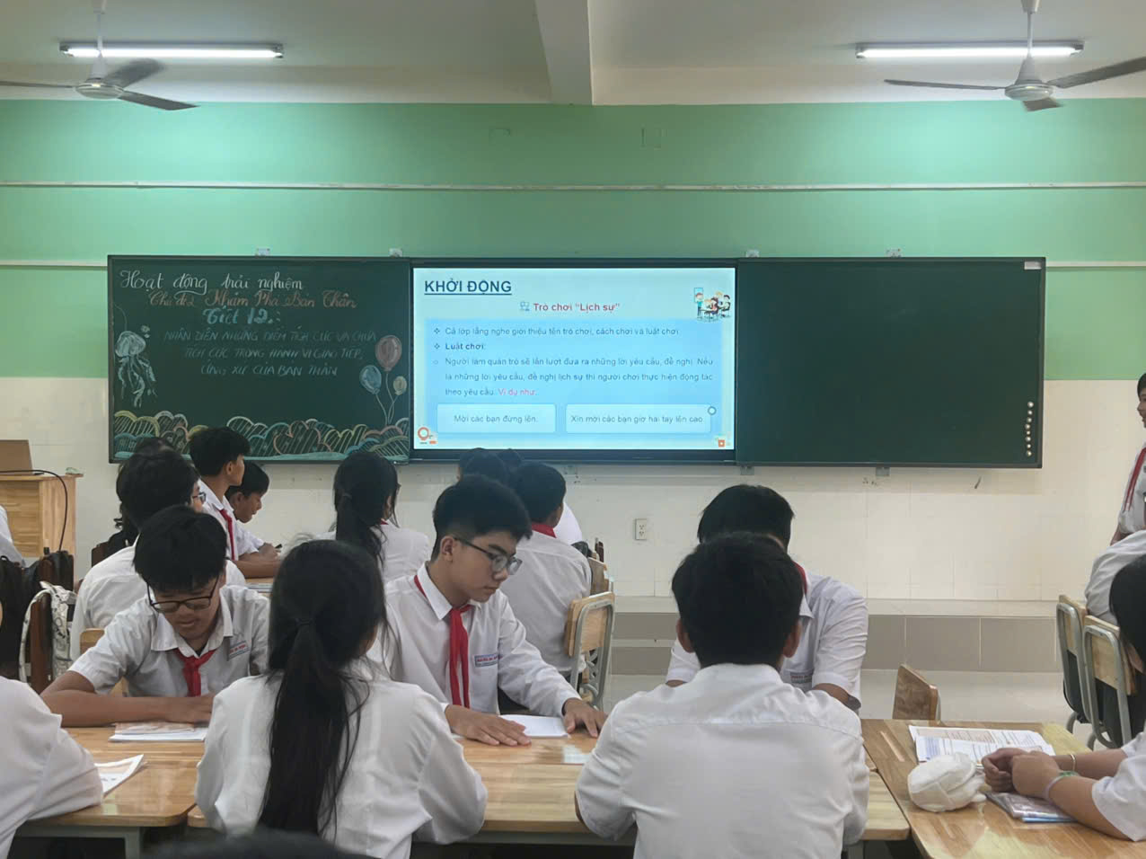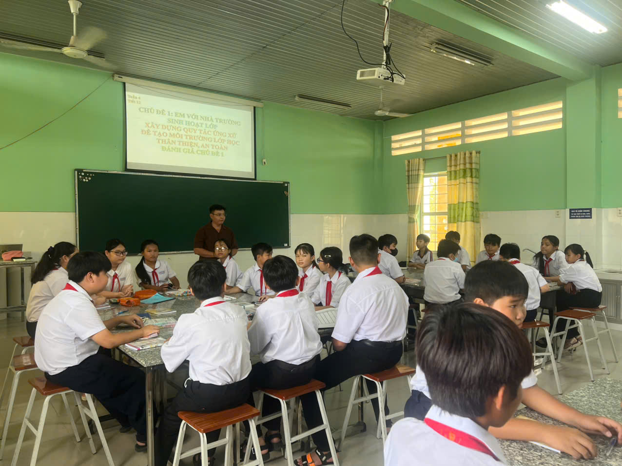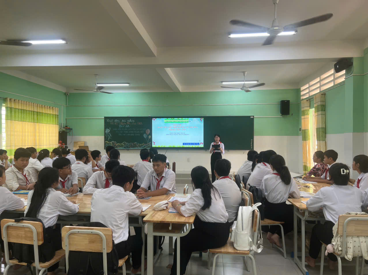 Hình ảnh thực hành tiết dạy và thuyết trình biện pháp nâng cao chất lượng của GV tham dự cuộc thi GVCN giỏi năm học 2025-2026