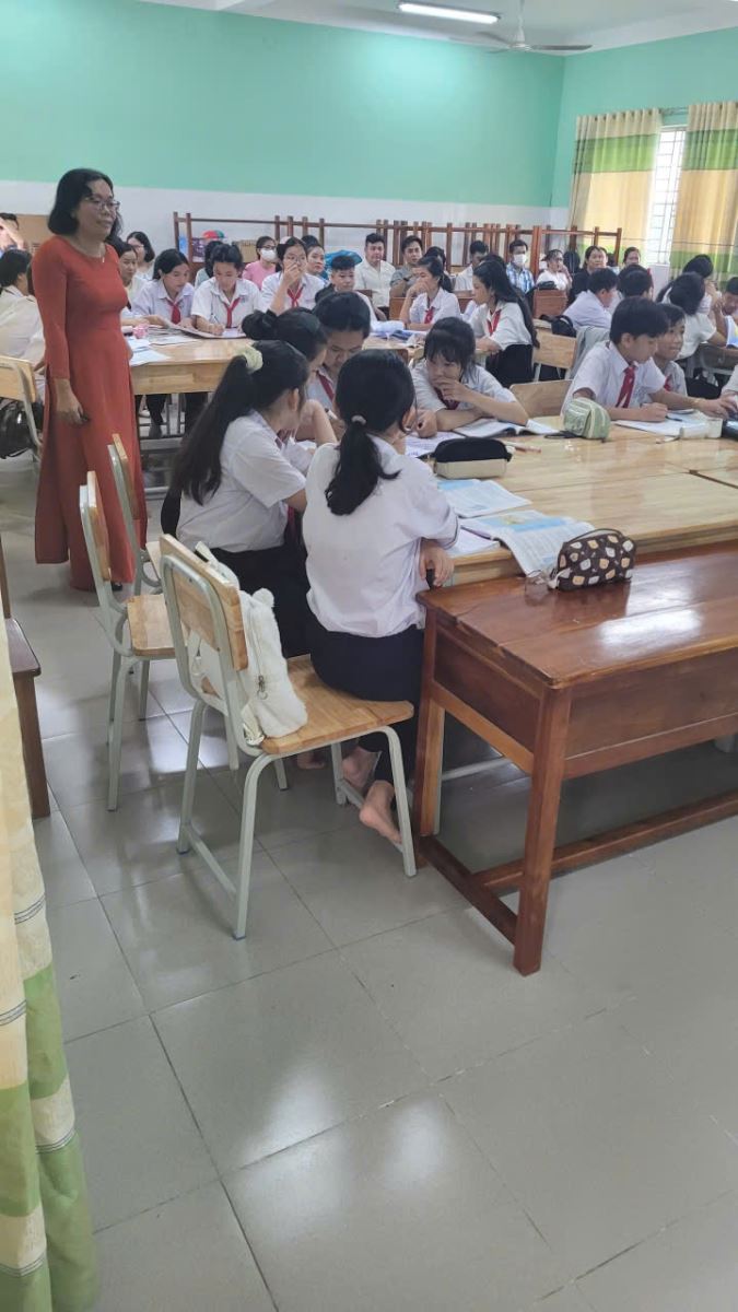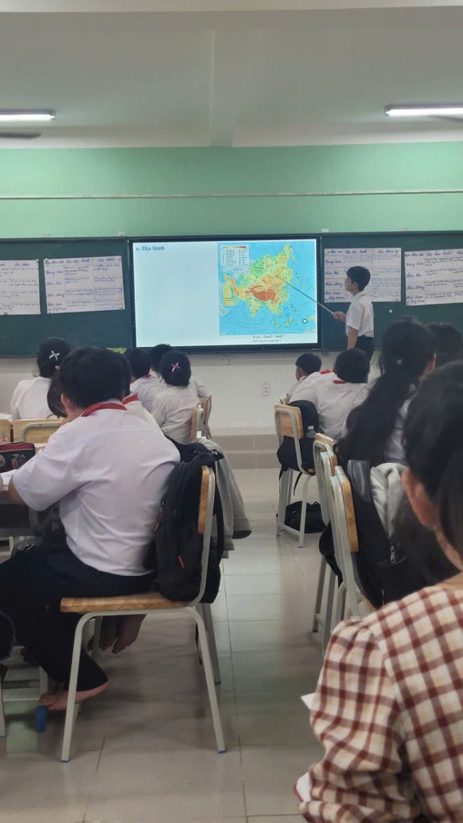 Trong buổi sinh hoạt, cô Lệ trình bày tiết dạy minh họa với nội dung được đổi mới theo hướng phát triển phẩm chất và năng lực học sinh, kết hợp linh hoạt giữa phương pháp trực quan, thảo luận nhóm và ứng dụng công nghệ thông tin trong giảng dạy.